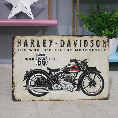 Tranh sắt cỡ 20x30cm xe gắn máy Harley Davidson kiểu hoài cổ trang trí tường chuyên quán cafe độc đáo (coffee shop decoration retro vintage tin paintings)